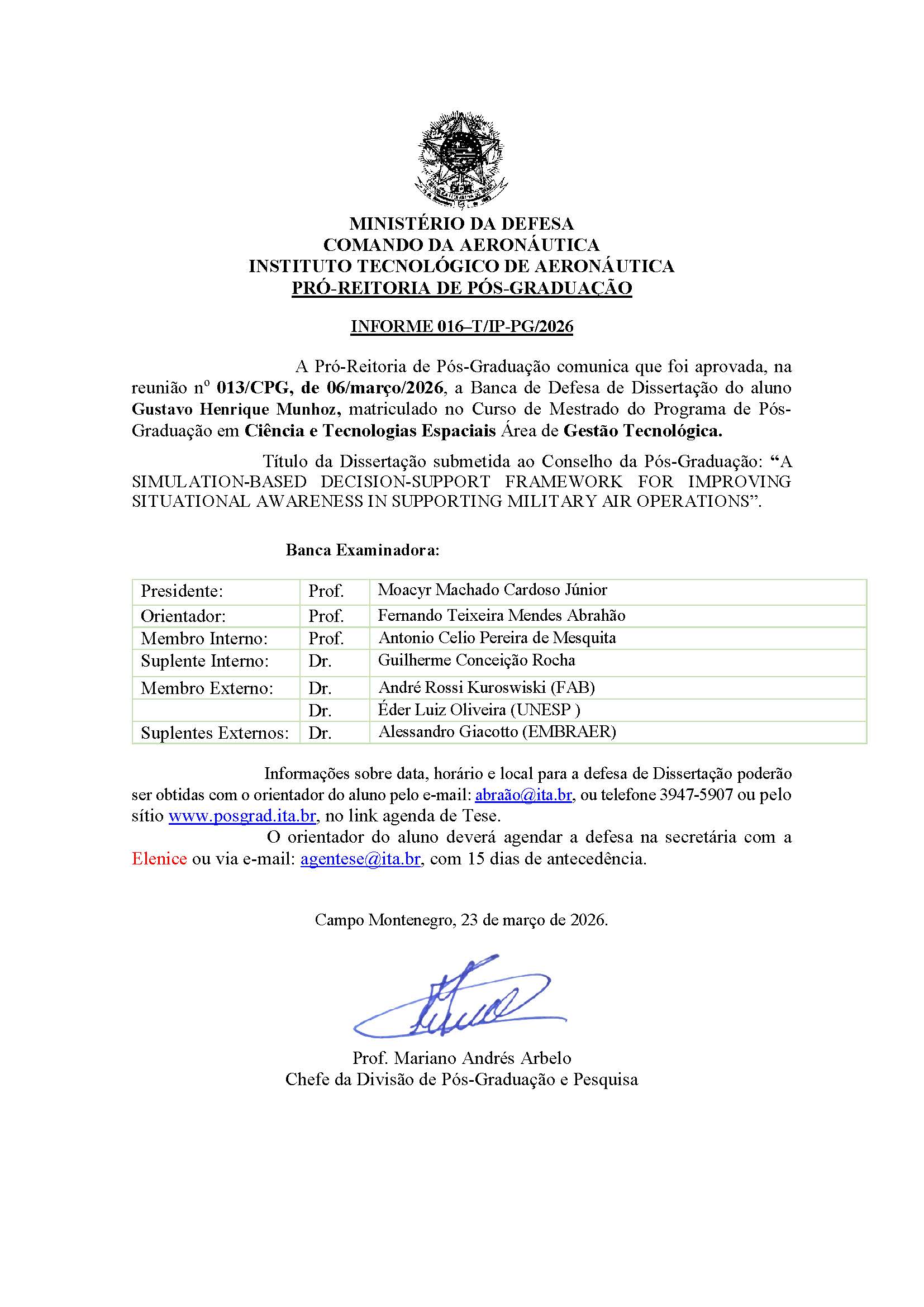 Seguem informes aprovados na reunião nº 13 do CPG de 06 de março de 2026.