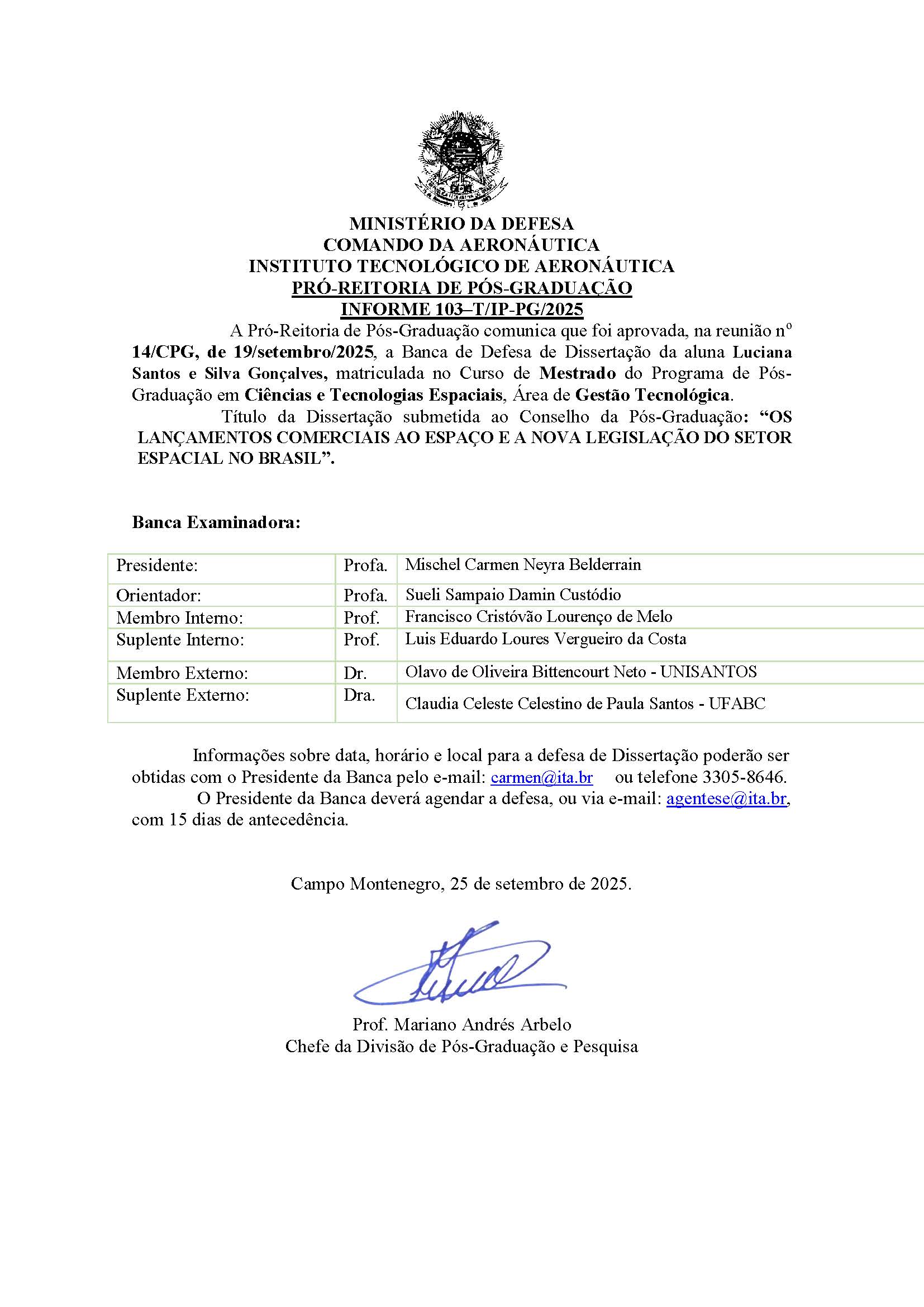 Seguem informes aprovados na reunião nº 14 do CPG de 19 de setembro de 2025.
